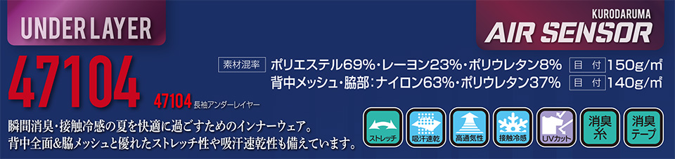 KURODARUMA (クロダルマ) オールシーズン用作業服 「カジュアルユニフォーム」 47104/長袖アンダーレイヤー