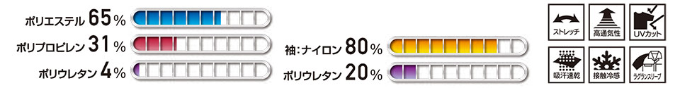 袖:ナイロン80%・ポリウレタン20%