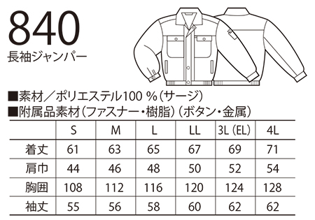 840/長袖ジャンパー |