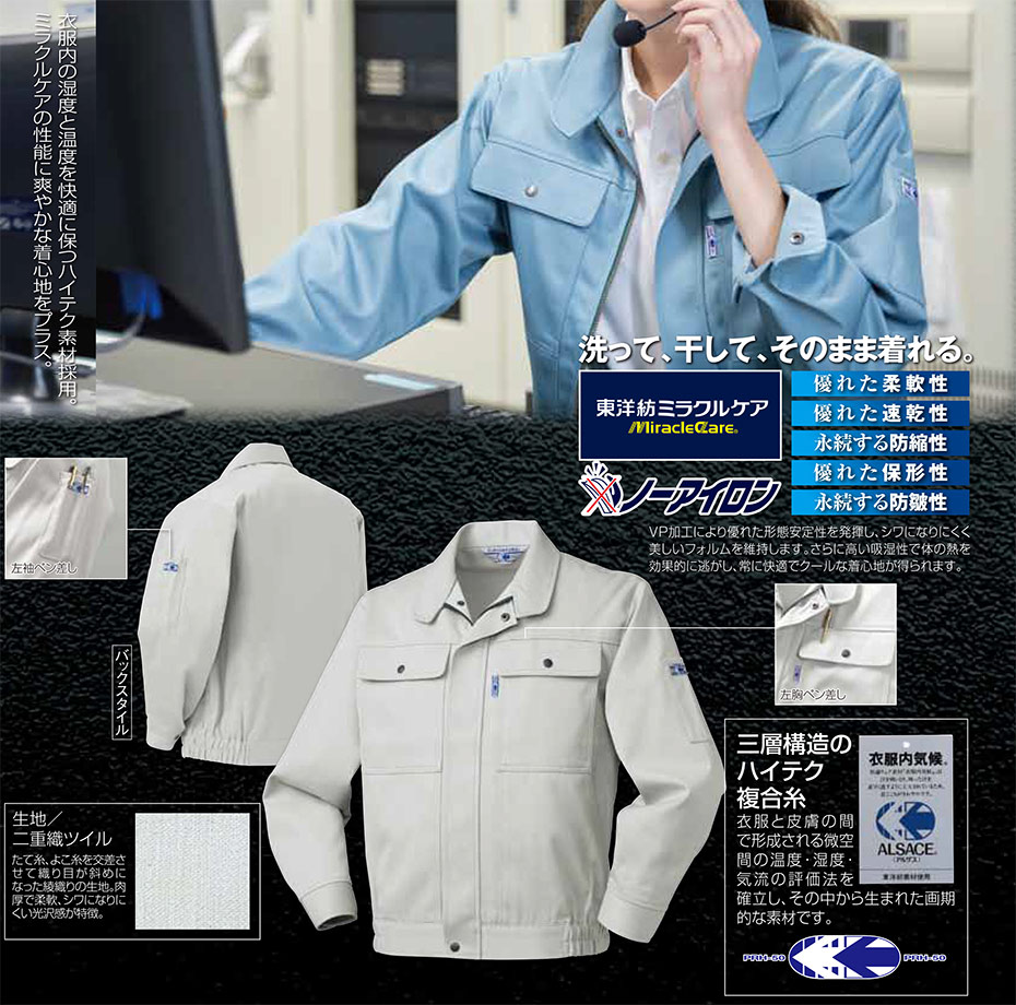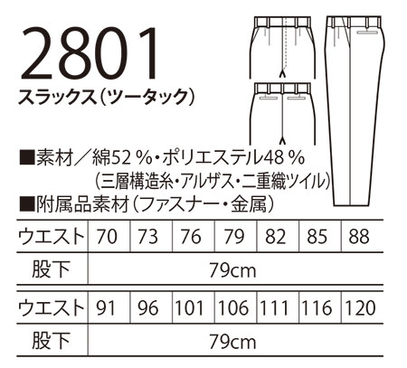 綿52%・ポリエステル48%(三層構造糸・アルザス・二重織ツイル) |