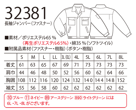 32381/長袖ジャンパー(ファスナー) |