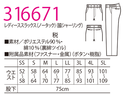 316671/レディーススラックス(ノータック)(脇シャーリング) |