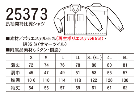 25373/長袖開衿比翼シャツ |