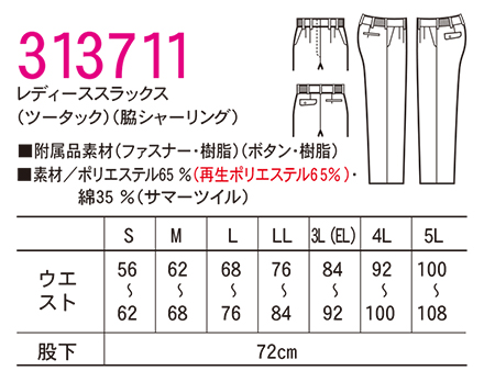 313711/レディーススラックス(ツータック)(脇シャーリング) |