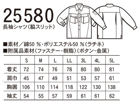 25580/長袖シャツ(脇スリット) |