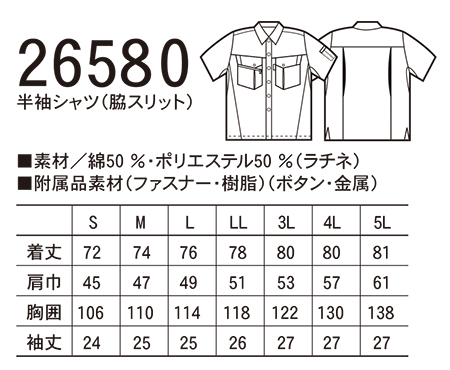 26580/半袖シャツ(脇スリット) |