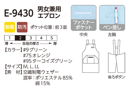 | E-9430(男女兼用エプロン) |