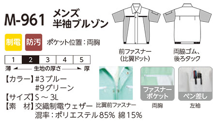 | M-961(メンズ半袖ブルゾン) |