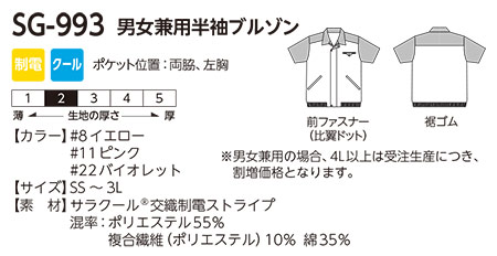 | SG-993(男女兼用半袖ブルゾン) |