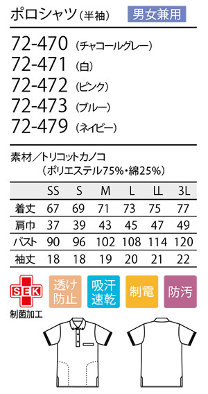 住商モンブラン(MONTBLANC) ケアユニフォーム 72-470.72-471.72-472.72-473.72-479/ポロシャツ(半袖)