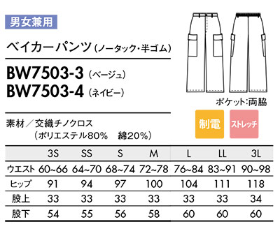 | 男女兼用 ベイカーパンツ (ノータック・半ゴム) |