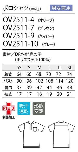 住商モンブラン(MONTBLANC) ケアユニフォーム OV2511/ポロシャツ(半袖)