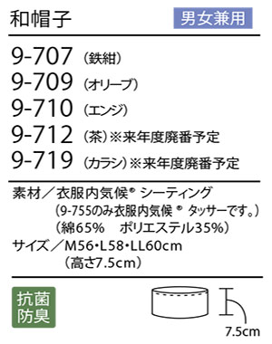 | 男女兼用 和帽子 来年度廃番予定 |