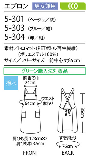 エプロン [男女兼用] ECO 2024年廃番確定 |