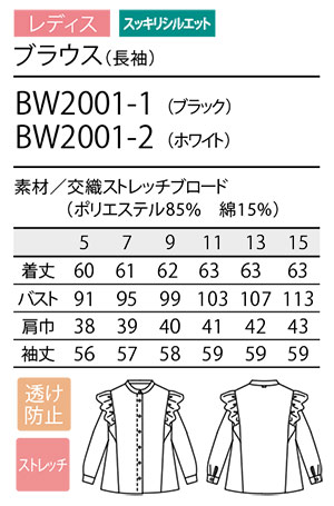 住商モンブラン(MONTBLANC) クッキング サービスユニフォーム BW2001/ブラウス(長袖)