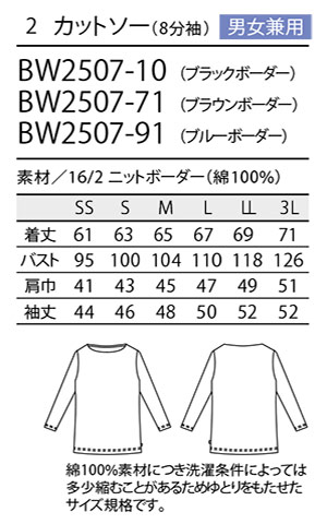 住商モンブラン(MONTBLANC) クッキング サービスユニフォーム BW2506・BW2507/カットソー(8分袖)
