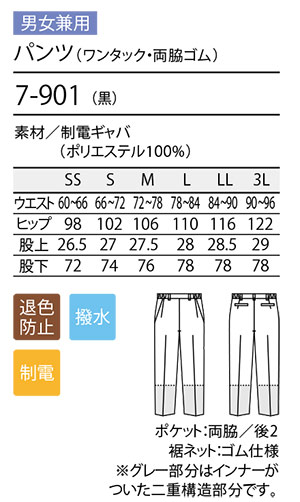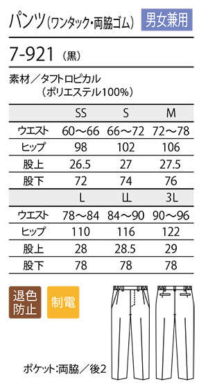 パンツ (ワンタック・両脇ゴム) [男女兼用] |