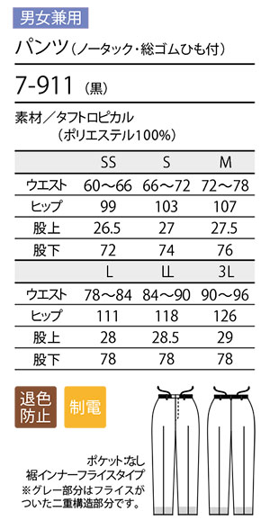 | 男女兼用 パンツ (ノータック・総ゴムひも付) |