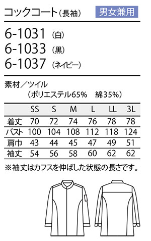 住商モンブラン(MONTBLANC) クッキング サービスユニフォーム 6-1031.6-1033.6-1037/コックコート(長袖)