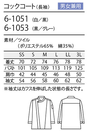 品名 コックコート(長袖) [男女兼用]