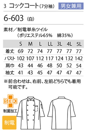 品名 コックコート(7分袖) [男女兼用]