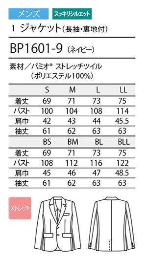 | メンズ/レディス ジャケット (長袖・裏地付) スッキリシルエット |
