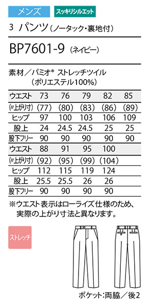 | メンズ/レディス パンツ (ノータック・裏地付) スッキリシルエット |