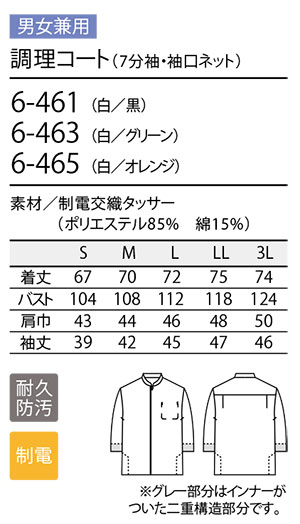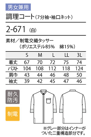 調理コート(7分袖・袖口ネット) [男女兼用] |