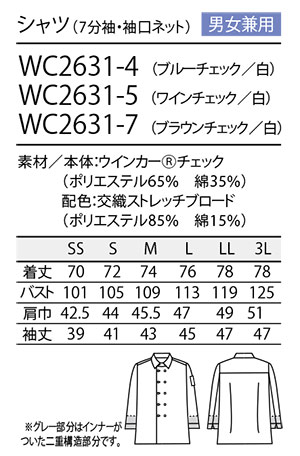 住商モンブラン(MONTBLANC) クッキングサービスユニフォーム WC2631-4.Wc2631-5.WC2631-7/シャツ(7分袖・袖口ネット)