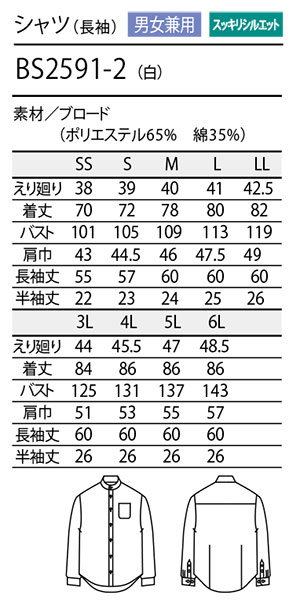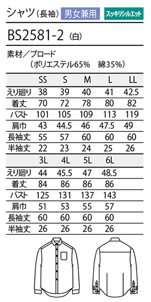 シャツ(長袖) [男女兼用] スッキリシルエット |
