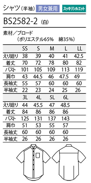 | 男女兼用 シャツ (長袖・半袖) スッキリシルエット |