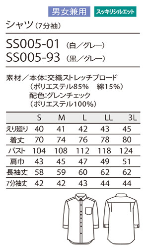 品名 シャツ (七分袖) [男女兼用] すっきりシルエット