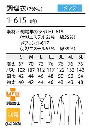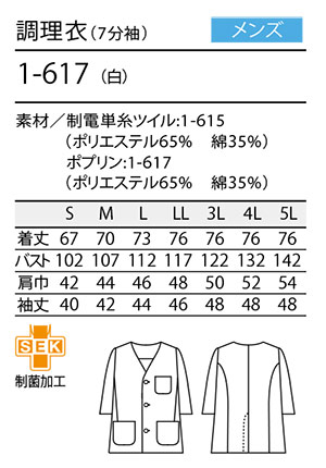 | メンズ 調理衣 (7分袖) |