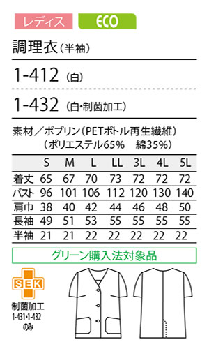 調理衣 (半袖) [レディス] ECO |