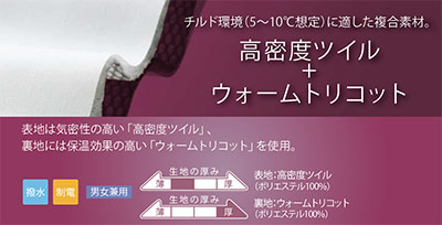 裏地:ウォームトリコット (ポリエステル100%) |