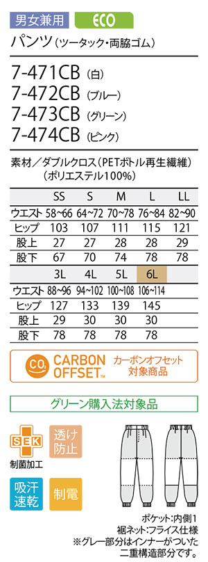 | 男女兼用 パンツ (ノータック・両脇ゴム) ECO |