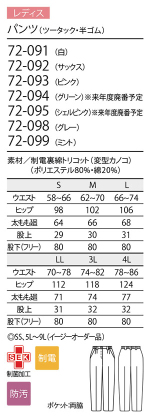 | レディス ナースパンツ (ツータック・半ゴム) |