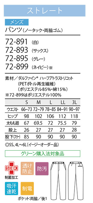 ※72-899は、ポリエステル100% |