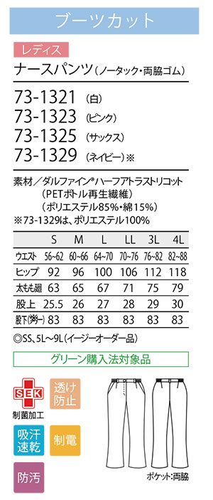 ナースパンツ(ノータック・両脇ゴム) [レディス] |