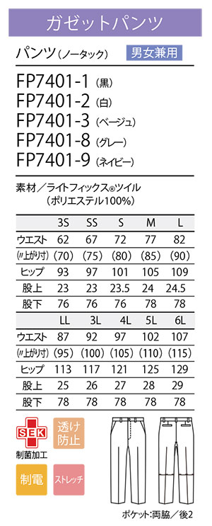 住商モンブラン(MONTBLANC) メディカルユニフォーム FP7401/パンツ(ノータック)