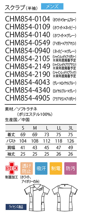 CHM854/メンズ スクラブ(半袖)