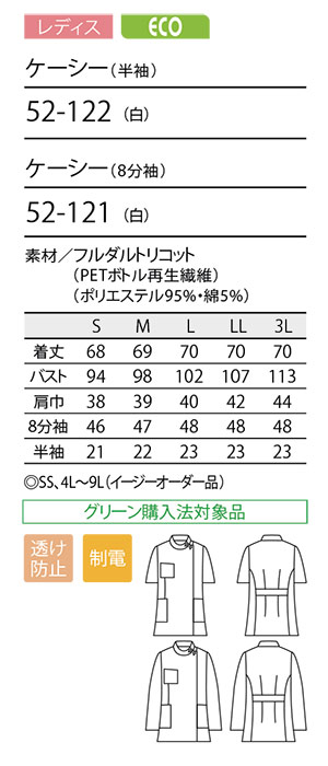 ケーシー(半袖/8分袖) [レディス] ECO