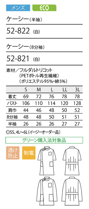ケーシー(半袖/8分袖) [メンズ] ECO