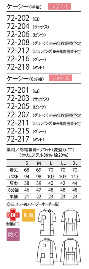 72-217 (8分袖/ミント) 来年度廃番予定 |