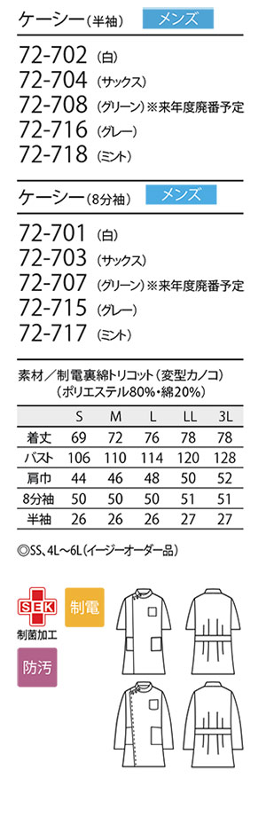72-718 (半袖/ミント) 来年度廃番予定