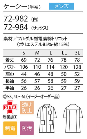 住商モンブラン(MONTBLANC) メディカルユニフォーム 72-982.72-984/ケーシー(半袖)・72-981.72-983/ケーシー(長袖)