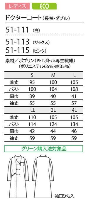 ドクターコート(長袖・ダブル) [レディス] |