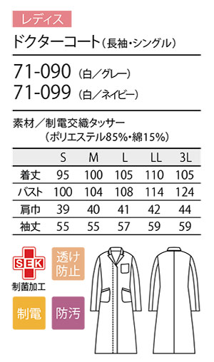 品名 ドクターコート(長袖・シングル) [レディス]