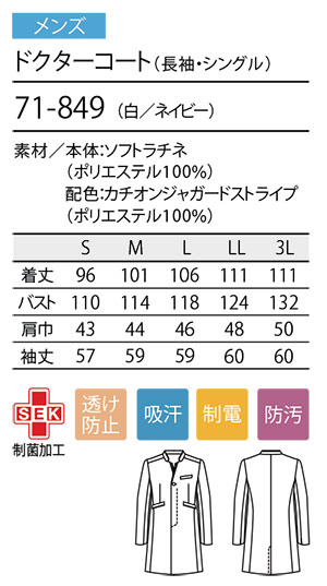 | 71-849/メンズ ドクターコート(長袖・シングル) |