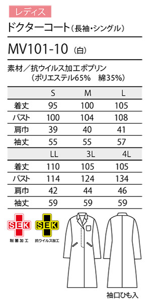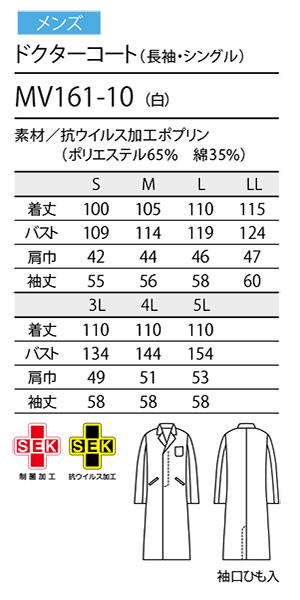 住商モンブラン(MONTBLANC) メディカルユニフォーム MV161-10.MV101-10/ドクターコート(長袖・シングル)